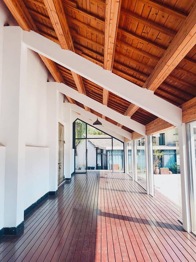 这个村子里的民宿比较少,我们的车开到最里面的时候还没有看到,以为是对面的房子,突然失望了一下,没想到再往里走几步,才看到。两层小楼,和后面山上的竹林完美融合在一起,整体的木质结构让人很放松很舒服。