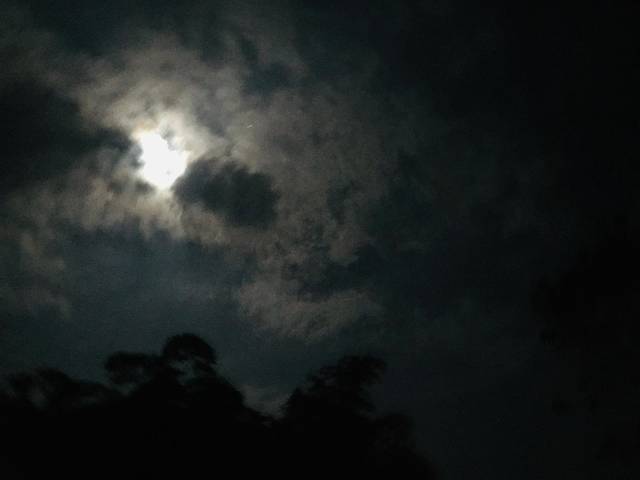 我想象的夜晚,应该是满天繁星的,但是这两天刚好是阴历15,月亮异常的圆异常的亮,只有一颗星星在它身边陪着它。
