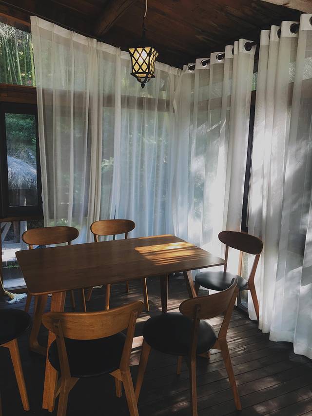 从外面溜达回来已经10点多了,回来收拾完行李,就开始坐在阳台上发呆。闭上眼睛听着风吹竹林“沙沙沙”的响声,真的太舒服了。竹言溪语的名字应该也是这么来的吧,小时候觉得风吹树叶的声音像唱歌,树叶摇晃像跳舞的比喻很俗气,但是此刻真的就是这种感觉。