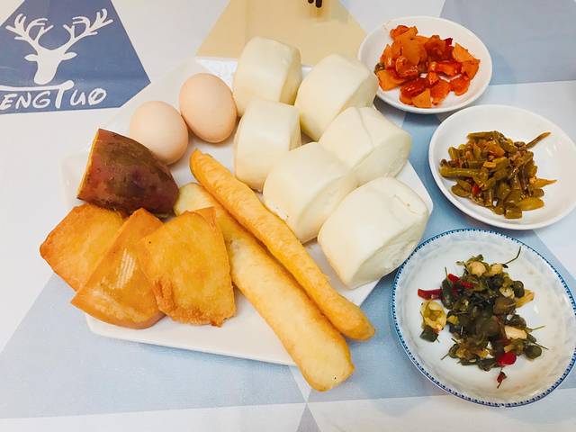 阿姨人超级好,特别热情,一路小跑给我拿了两个刚出锅的,这个味道真的是好香啊。后来到饭店里,配着辣椒酱,软软糯糯的,真的太好吃了。
