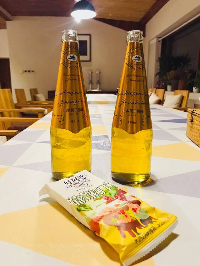 晚上回到民宿时间还早,正赶上这两天是十五,月亮特别的圆,超级适合赏月、喝酒、聊天。莫干山当地的这个啤酒,酒精度数特别低,只有3度多点,不能喝酒的话也可以少来点,如果平常比较爱喝酒的话,会觉得这个味道稍微有点淡。