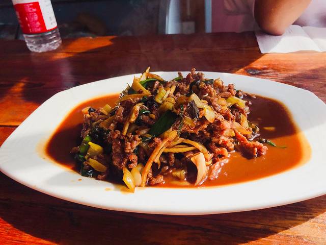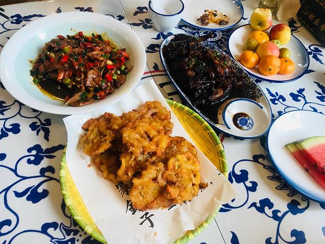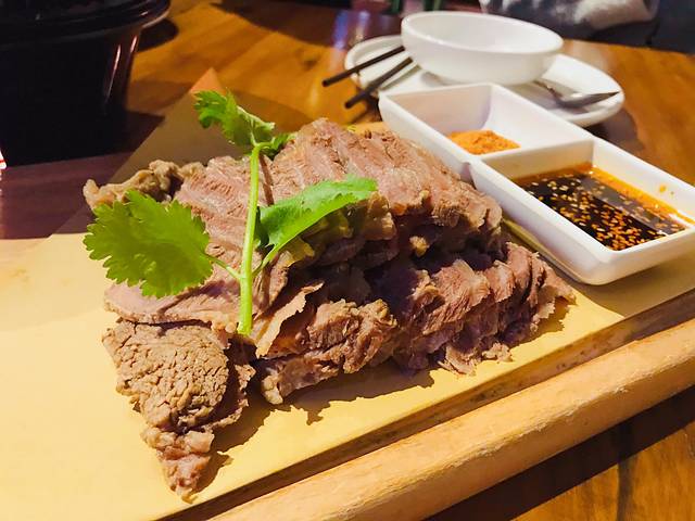 整个餐厅装修很有特色,有很多自行车的元素,而且服务态度超级好,这应该是我在所有景区里面,不对,很多地方的服务都不见得有他们好。本来想要瓣蒜配合牛肉吃,阿姨告诉我们没有,然后转了一圈回来又问我们辣椒行不行,又拿过来一碟辣椒。