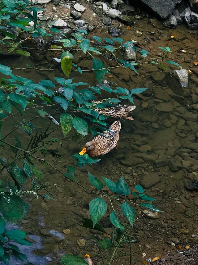 看到湖中间有一个小亭子,本来想走过去休息 一会,没想到亭子旁边应该还藏着这两只小可爱,一点也不怕人,我走过去的时候它俩就慢悠悠的下河去了。