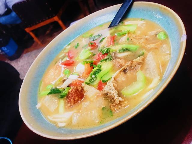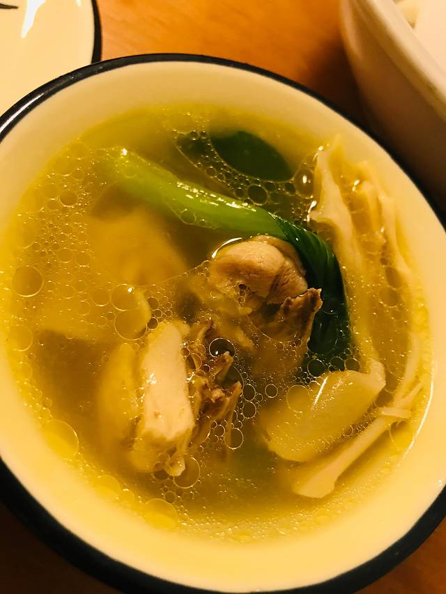 鸡汤非常清淡,加上清爽的笋干,喝上一口非常的舒服。这边的笋干很特别,之前我们在桂林吃的笋干都有种嚼不动的感觉,都是这个笋干还稍微有点脆脆的,配着鸡汤特别好吃。