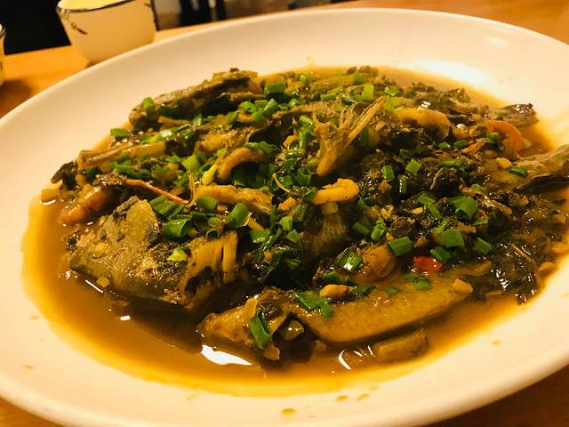 店面环境一般,但是应该有很多回头客,我们隔壁桌应该就来了不止一次了。老板娘推荐的这个小杂鱼超级好吃,里面有小黄鱼、泥鳅、小鲫鱼、小河虾,上面铺了一层酸菜,非常的入味,尤其是酸菜特别好吃,但是刺有点多,要小心一点。