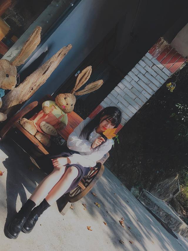 告诉花花说我想拍出一种正在等人的感觉,调成旧旧的色调。然后,怎么都不满意,我就跟这个背景杠上了,拉着花花一遍一遍的拍,她俩就在旁边笑我们,哈哈哈。