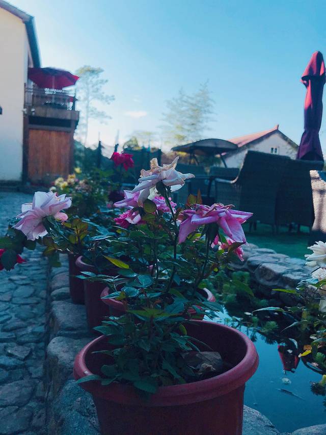 超级喜欢民宿里的小院子,一楼种满了各种可爱的小花,一个装满小鱼的池子,从门口一直围着院子到最里面。院子里还设置了可以烧烤的地方,总之非常的舒服。