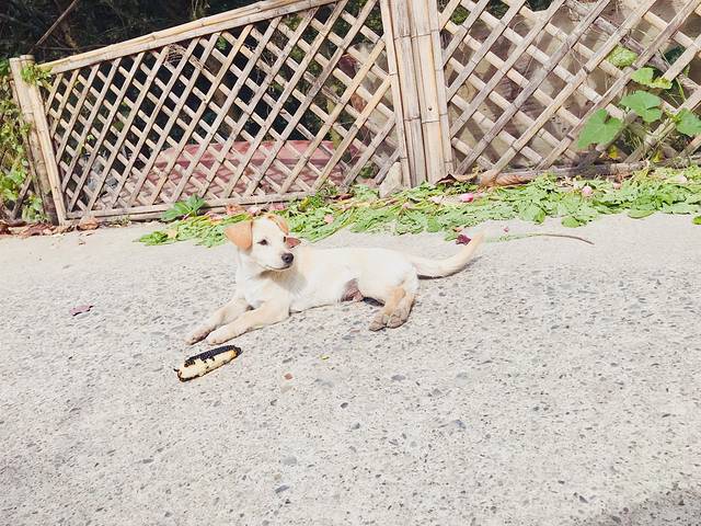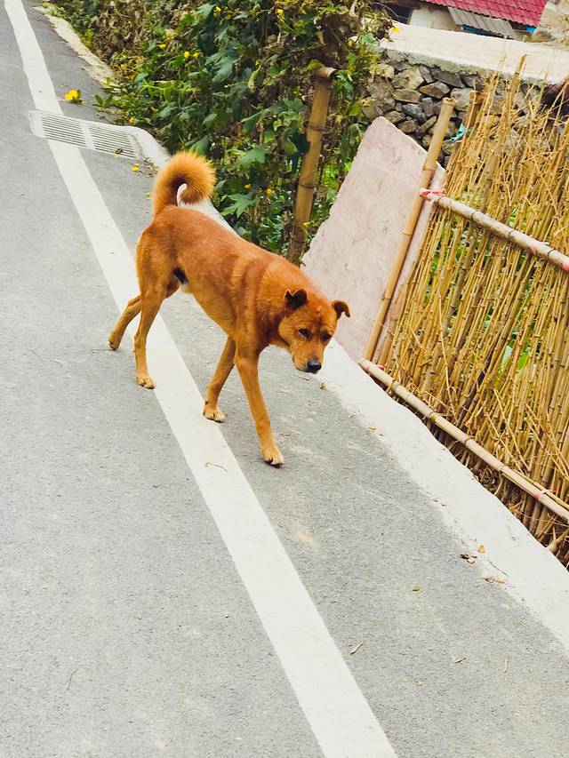 吃完饭继续去村子里溜达,在村口有两只“小恶霸”,这么说是因为我第一天出去的时候,它俩就站在家门口冲我叫,那架势太唬人了,给我吓得差点出不去,眼神都不敢跟他们对视,贴着墙边哆哆嗦嗦走出去的,哈哈。