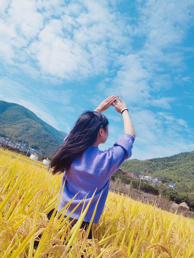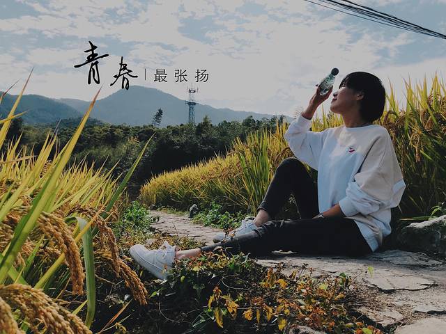 这里还有几片小小的稻田,一进来花花就开始抖音上各种搜索“稻田怎么拍呢?”又是手背后面抬头、坐在地上看远方什么的,果然是一看就会,一拍就废,哈哈哈。几个人在稻田里半天也没整明白,到底应该怎么拍。