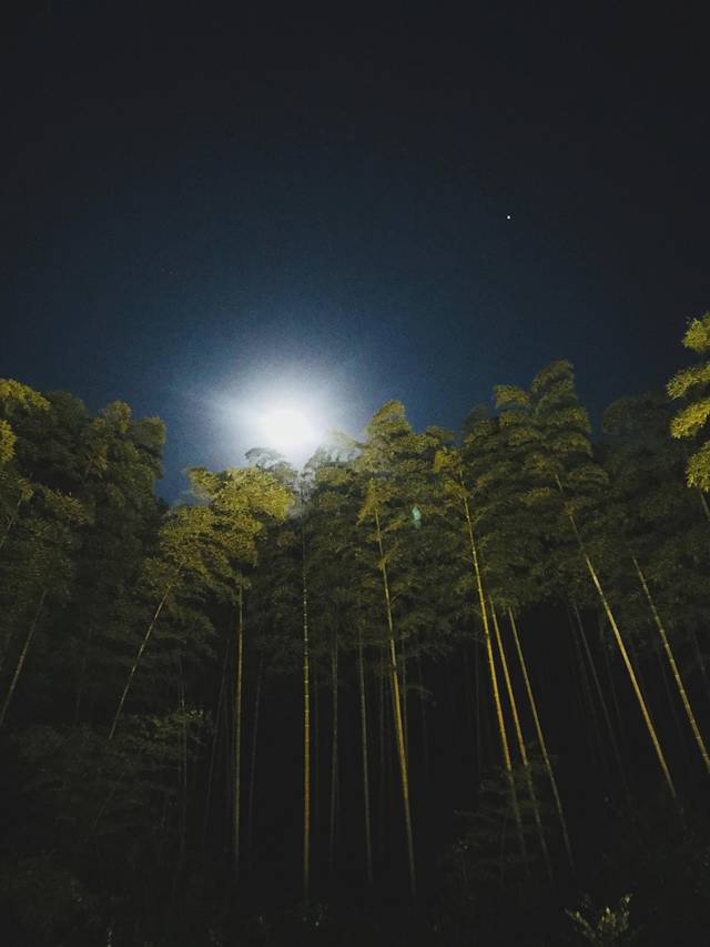 几轮麻将下来才9点多钟 ,我出门拿东西,一抬头正好看到月光映着满山的竹林,简直太好看了,于是拿着酒坐在外面的小沙发上面,慢慢享受这难得的月光。
