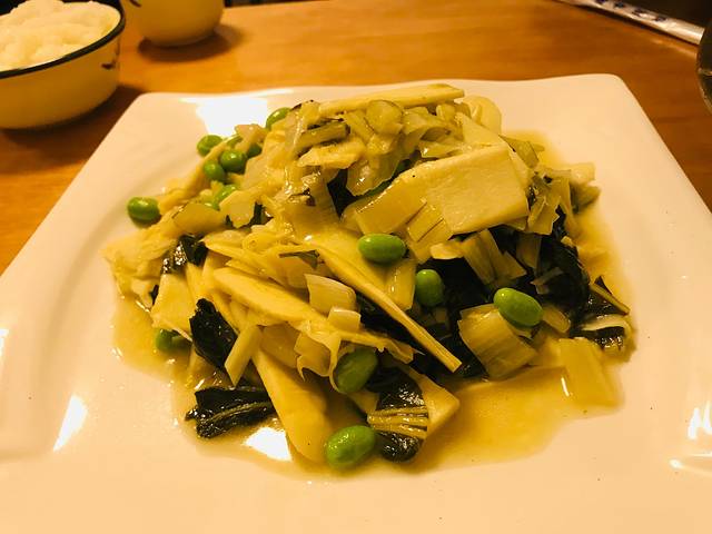 另外还点了一个韭黄香干和酸菜笋干,都是比较清淡的菜,吃到一半的时候突然想起来没问价钱,就在猜这一桌子也不知道要多少钱,会不会特别贵,哈哈哈。