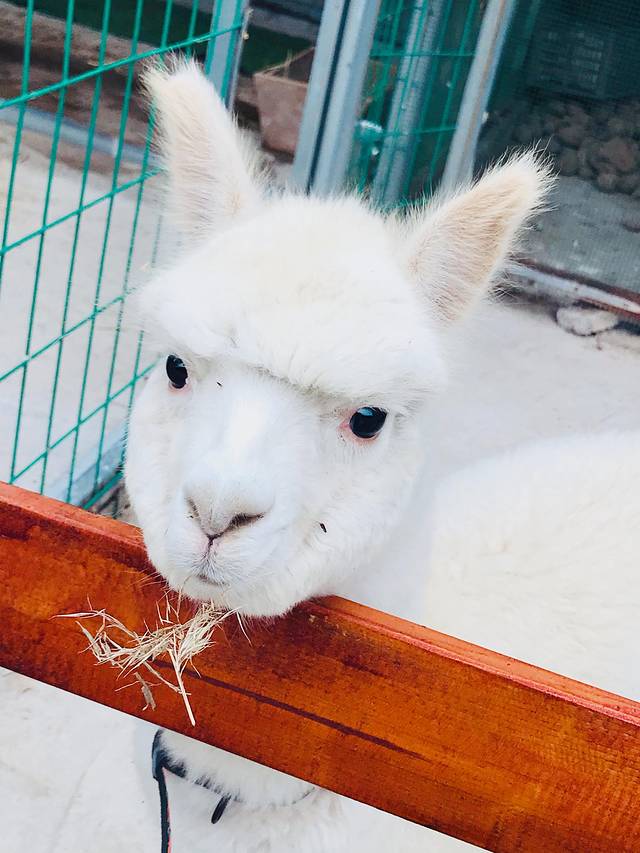 没想到继续往前走,竟然偶遇两只小羊驼,哎呀妈呀,这俩小可爱简直要笑死我了。一直就卧在地上,虽然身子不动,但是只要你从它旁边走,它那傲娇的小眼神就会跟着你走。