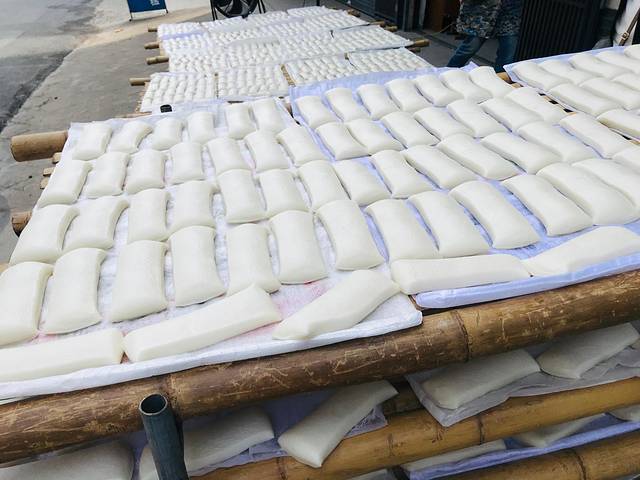 远远看到有一家阿华年糕,走进的时候米香味扑鼻,一溜小跑就过来了,还担心买少了不卖,阿姨问我要多少,弱弱的说了一句2个,哈哈哈哈。