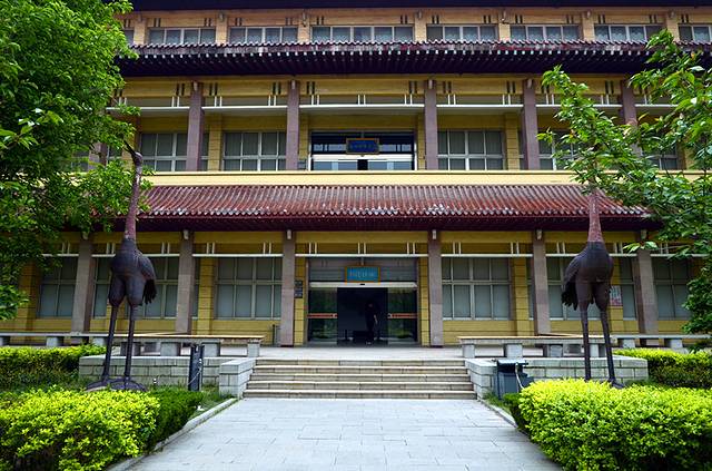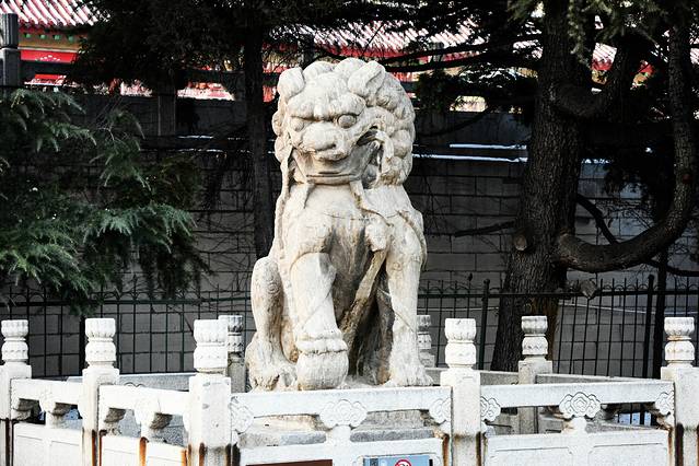 博物馆门前蹲守着一对巨型狮子,石狮昂首挺胸,神态威猛,是明朝衡王府的遗物,虽经400余年的沧桑,但威仪不减。