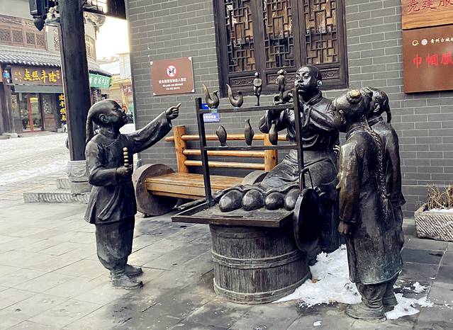 走进博物馆,映入眼帘的是青州简史陈列厅,门前的铁鹤也是明代衡王府的遗物,