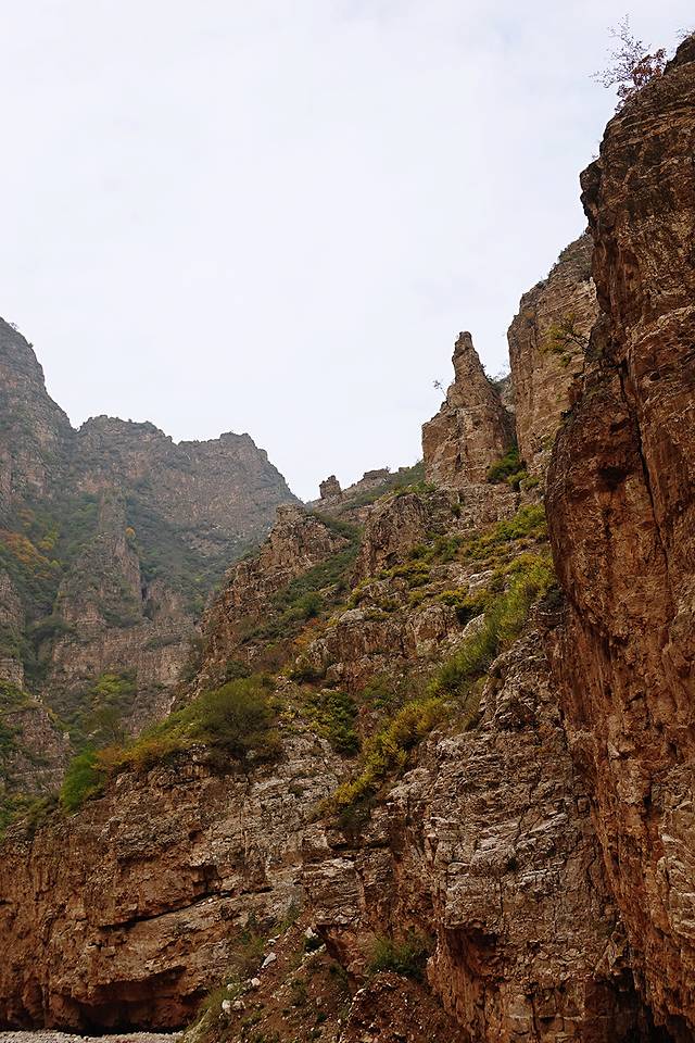 初进入水峪,你可能会感觉“景色平平”,入口处崖壁陡峭,山石高耸,沙石遍地,据说这里曾是蔚县采石头的地方。如果光凭借入口处的印象就给这趟徒步行程下定义,我只能说too young too simple!因为随着你慢慢往里深入,就会发现这是一条“宝藏峡谷”!