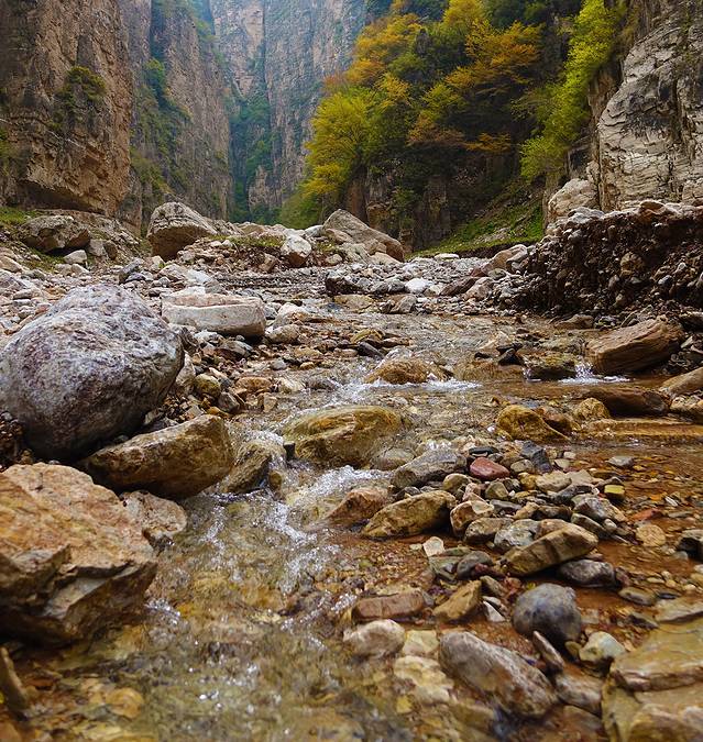 水峪是一条长度7.23千米的原生态峡谷,位于蔚县宋家庄镇,峡谷地势为入口低,深处高,整个徒步行程其实就是一次逆流而上的“爬坡”,对徒步者的体能也是一大考验。