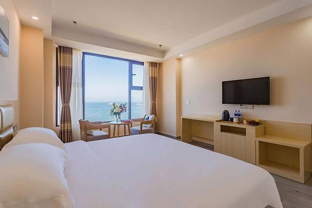 日出日落,在床上可以尽情享受风景带来的幸福,和喜欢的人一起看着美景,心情愉悦,旅行体验倍儿爽!我们都感叹和爱的人一起看着风景,不是因为风景很美,而是和对的人做对的事情,一切都变得很浪漫!当然,韵海观昕酒店能提供这样精细的服务真的非常棒!我回去之后也推荐朋友以后来双月湾就住这里。