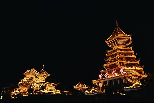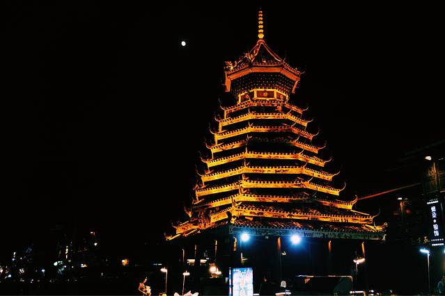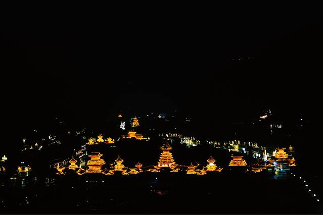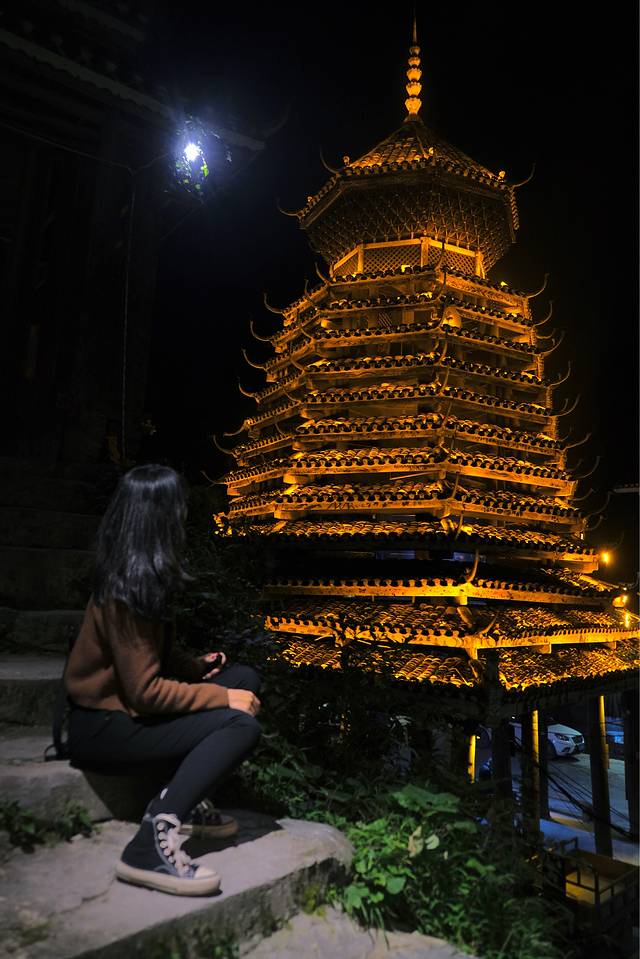 西江最不能错过的其实是夜景,大批的旅行团晚上八九点才过来。跟肇兴侗寨相比,这里的游人要多上十倍,不过十点过后人就会少很多了。