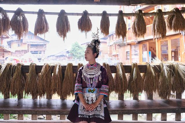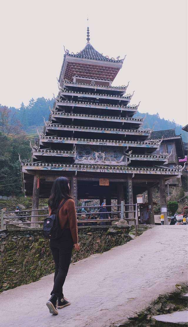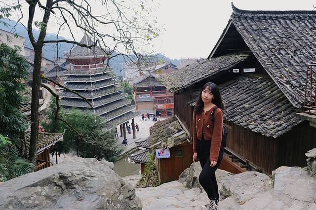先去换装自拍。总结了在侗寨自拍的经验,这次没有大包小包,只背了相机和三脚架出门。