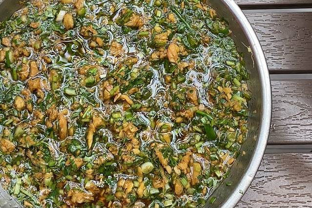 看着调料区的黄豆面、脆臊沫、甜面酱、折耳根等等,我又方了,盲调,但竟然很好吃。