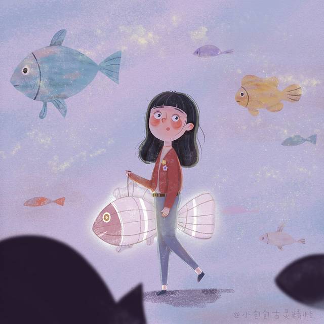 很喜欢这排金鱼灯,画了一张,我尽力了。