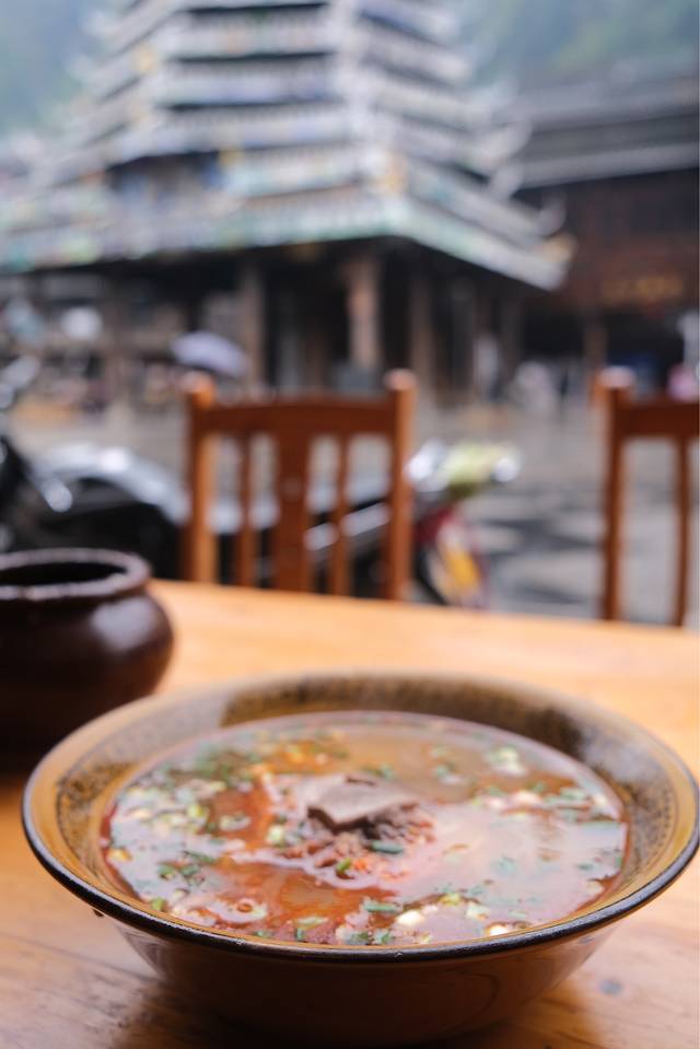 还了衣服也到中午了,又淅淅沥沥下起小雨,在信团鼓楼对面吃了碗酸汤牛肉面,酸汤真的好好吃!