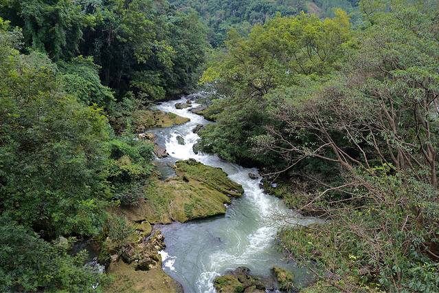 我们先到了天星桥,看攻略说前半段风景一般,后半段的银链坠潭瀑布一定要看。这个景区基本上就是一条路七拐八拐的走下去,有水路、有桥、有石头缝隙,都特别窄,如果有游客停下后面就会堵上人,所以我们这一路基本上就是被人推着一直走下去的。感觉经历了一次徒步…回程实在走不动了,坐了缆车10元/人,但其实缆车也并没有近多少,从缆车下来坐摆渡车,然后后半段还是要走回去,这一路匆匆忙忙走了两个半小时,实在崩溃。
