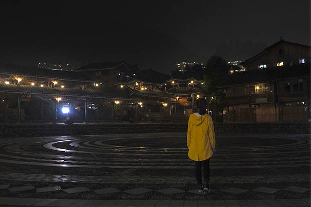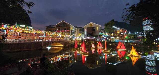 介绍了许多西江的风土习俗,指了山尖尖上头人住的房子,还说我如果前天来就能赶上他们过苗年,又介绍了游方节——这是苗寨里青年男女交朋友的节日。为啥我说老板耿直呢,他叮嘱我去河边拍照要小心,说去年有个女孩子就掉下去了,就住我那个房间。我听完一惊,然后老板不紧不慢的说,导致那个女生没有换洗衣服,多住了一天才走。好吧,虚惊一场哈哈。听他讲完大概的路线,我就出发去看夜景啦。