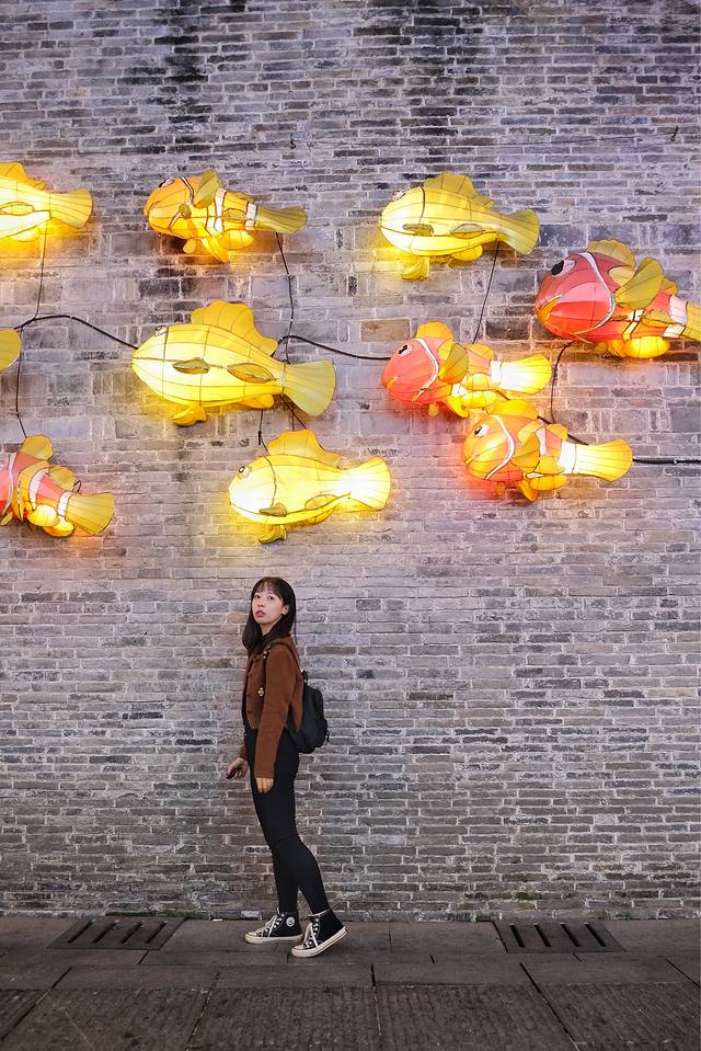 路过这串金鱼灯,感觉蛮有意境,继续自拍吧~