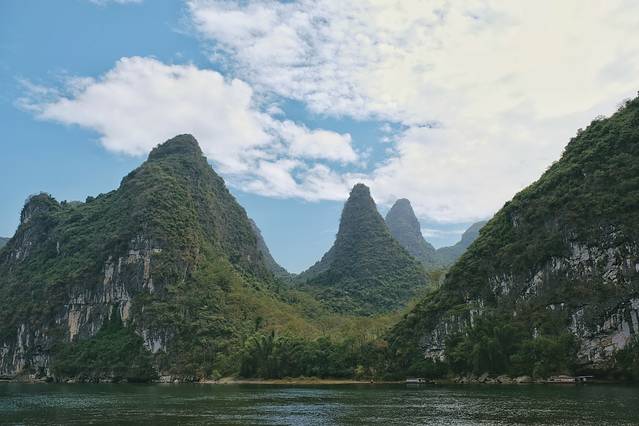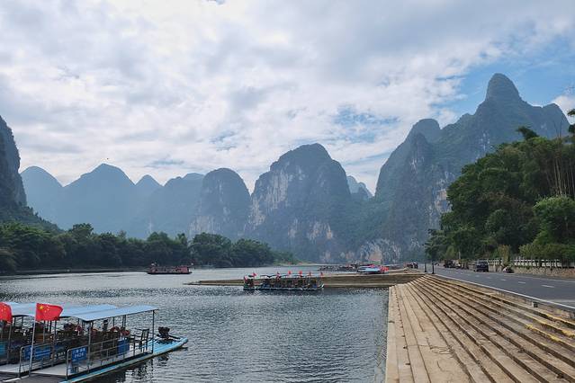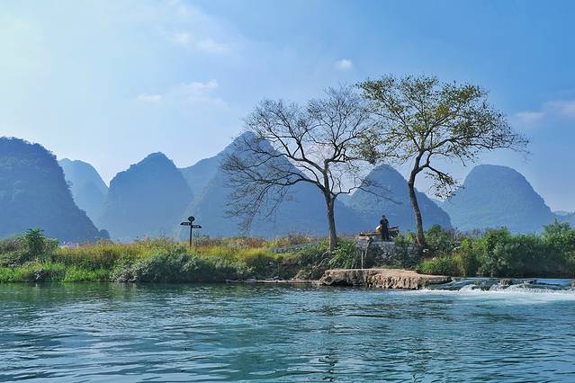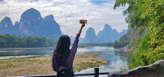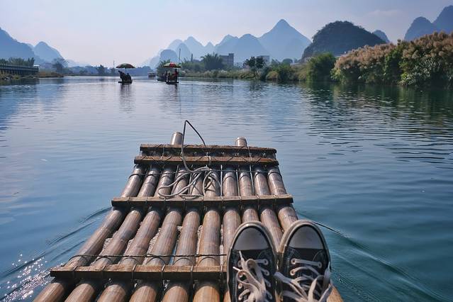 据说杨堤到九马画山这段是漓江漂流的精华路段。考虑到杨堤离市区比较远,一个人拎着行李坐车不方便打车又贵,于是在网上报了个拼车团,包漂流门票+桂林接和送阳朔一条龙服务,175元/人。