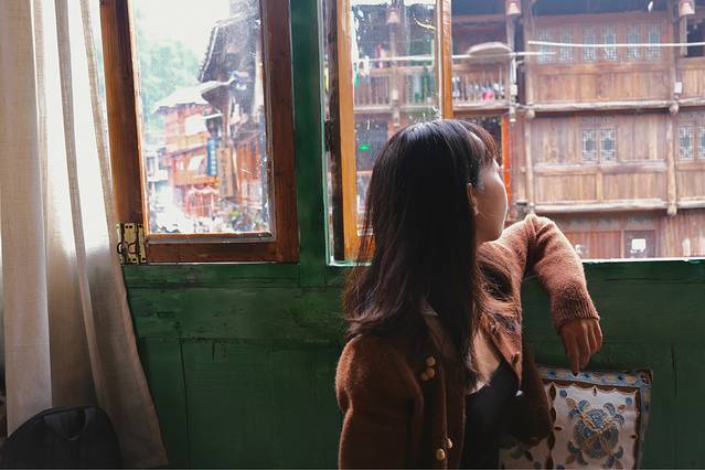 这家客栈的老板的态度实在太好了,出发之前咨询了老板侗寨到苗寨的路线,他自己不太了解,还跑去帮我问朋友、帮我在百度搜索。去了之后更是细心周到,看到我带了相机猜我肯定喜欢拍照,于是又带我去新店的观景台看风景,给我讲西江这几十年的发展历程。酒店位置在半山腰,离一号桥很近,房间能看到夜景。中午办理退房之后我在大厅休息,想等到一点半再出发去看演出,老板还叫我回房间休息说如果入住的人到了再喊我,一点半又特地微信提醒我演出时间快到了叫我别错过。这样耿直质朴实在让人太舒服了。