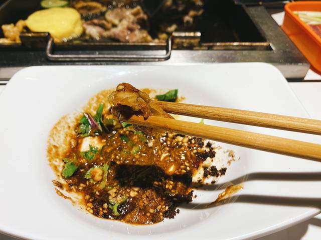 之前有看过吃烙锅的店,但具体吃的啥我还真没了解过。看上去就像烧烤+火锅,但味道口感和蘸料又都不同。