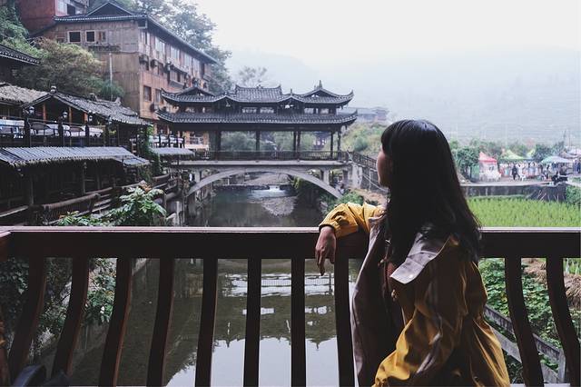 在风雨桥上支好架子自拍,有大爷来问我合照怎么收费哈哈,我仿佛无意间找到一条致富之路?来,请叫我凡尔赛 包。
