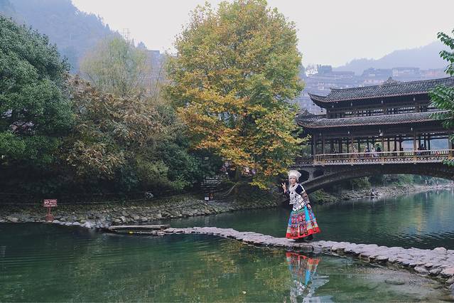 顺路走到一号风雨桥,看看田园观景区,再走到四五号桥附近,那边有很多租服装的。