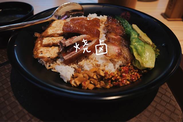 点了烧鹅拼叉烧饭。烧鹅本牙套选手有点咬不动,叉烧味道可以就是略肥。米就不行了,又硬又干,建议换成我们东北大米~