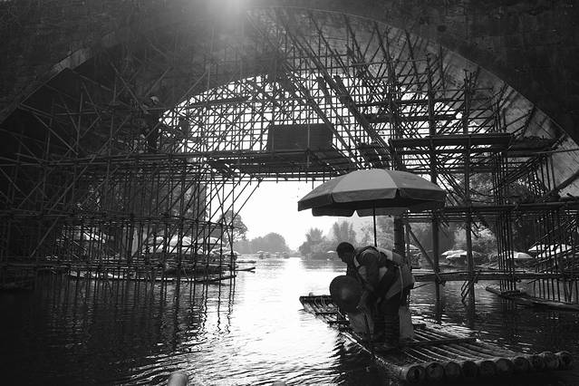 今天没带三脚架,巧的是一起拼筏的龙叔是个摄影爱好者,一路上都有在帮我们筏的四个人拍照。