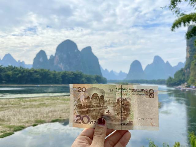 竹筏门票包括漂流+电动车。到站后凭票坐电瓶车,跟司机师傅说在观景台下车,就到了20元人民币背面图案的位置。