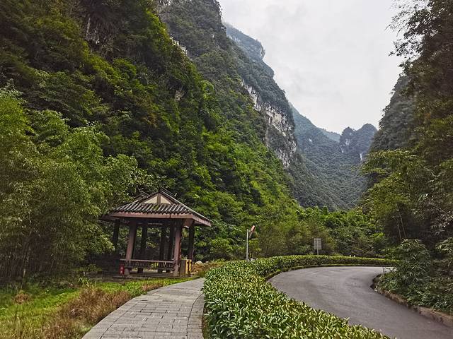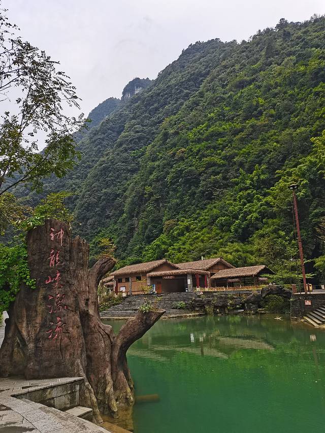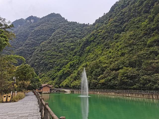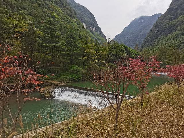 雨后的深秋总让人有种想使劲呼吸的冲动,湿度、气温刚刚好。走在小桥流水、高山峡谷的神龙峡,聆听着潺潺的流水声,自然而清净,放空而悠然。这个季节虽然错过了漂流的激情,却多了一分诗情画意的情志。远端山顶飘渺的薄雾若隐若现,神秘而令人向往。天星小镇坐落于金佛山脚下,两山环抱山深林密,铸就了其自然精致的独特韵味,特别是早晨起来推开房间的窗,迎面扑来丰富的负氧离子和略带湿气的新鲜空气,吸一口让人神清气爽(这绝对不是精神鸦片)。如果觉得冷,不能错过的是小镇的温泉,说实话温泉品质很一般,谈不上有多好。但是在湿冷空气中蒸一蒸、泡一泡,配上晚间的烤全羊,总有种反季节的温暖和畅快。最后不得不说下黎香湖边的农家菜,最特别的当属金佛山下的方竹笋,也算是久闻大名了,终于有机会走进来尝一尝,再配上农家现磨的豆花,让人的味蕾和肠胃仿佛进入到一个全新的世界。最后临走时,小店老板还送了我们两个自己种的柚子。味道也不错,果味十足[强]。愿兄弟们此行过的开心[抱拳]