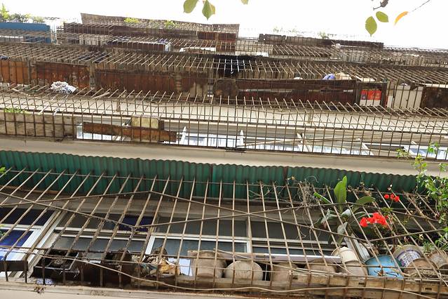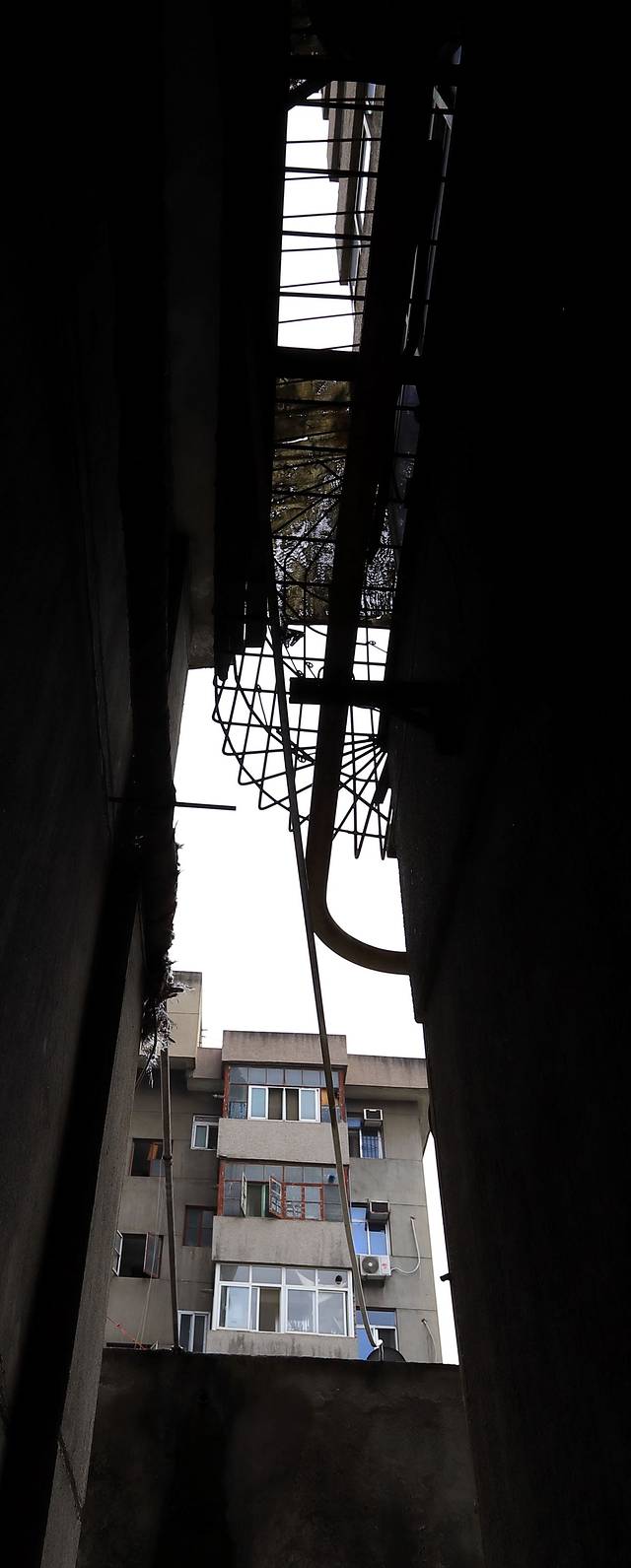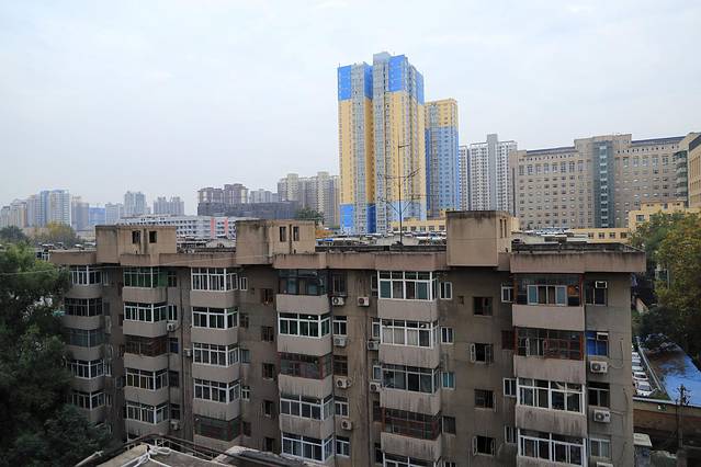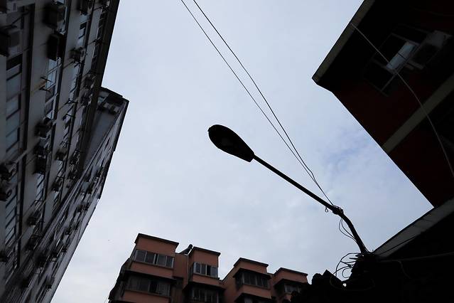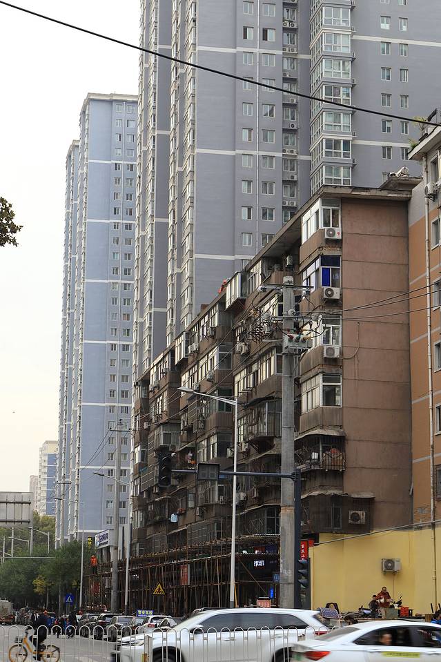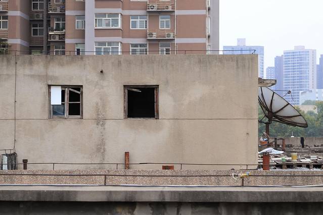小妮子看着图片,问我为什么拍这些不好看的房子。我分享了自己的感受,小妮子转身飘来一句:你和它们一样老。一个十岁的娃给出了让我觉得好像是那么回事的答案,不由得伸头向在一旁休息的手机的屏瞅了一眼。或许真的是我也老了,和这一栋栋裹着陈旧外衣,背着色迹斑驳的铁条,顶着四季肆虐的建筑群一样,落魄十足。