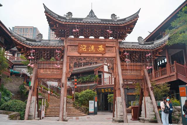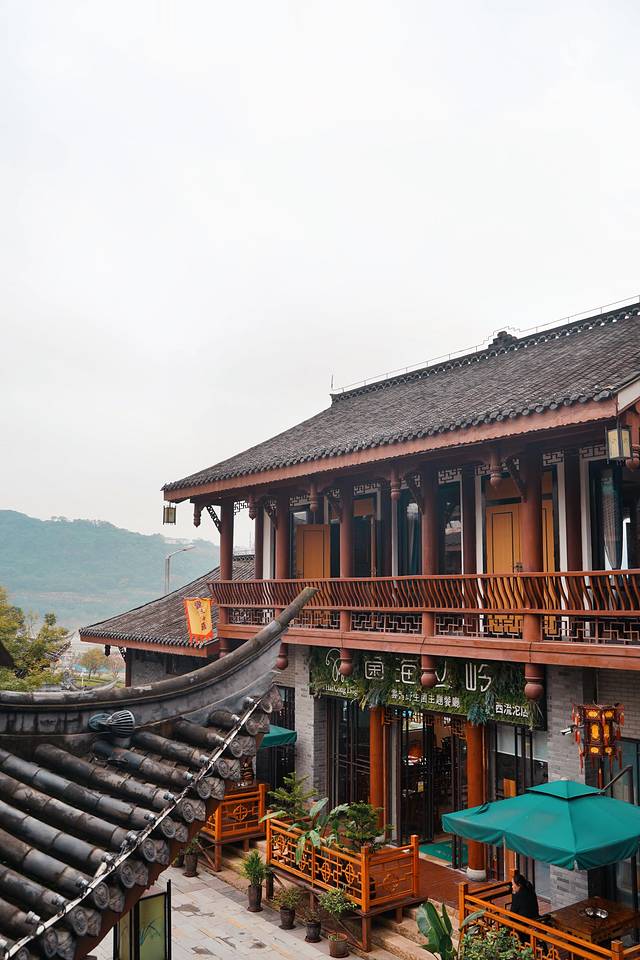 这里是一个很小的古镇,类似磁器口。它的颜值很高,城墙、牌坊、红地毯,高高挂起的红灯笼,处处彰显的中国风,散发着浓郁的古典气息。原木与青石的完美结合,飞檐斗角和雕花玻璃的中西合璧,让小镇看起来别致又时尚。算是巴南文化地标的尖子生~