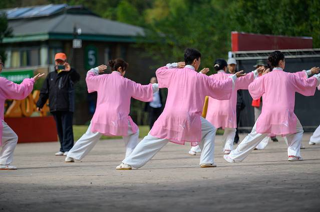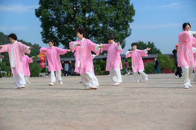 清晨 巨石山下遇见大名鼎鼎的太极拳,咱也不敢说,咱也不敢问,靠近了怕受内伤呀