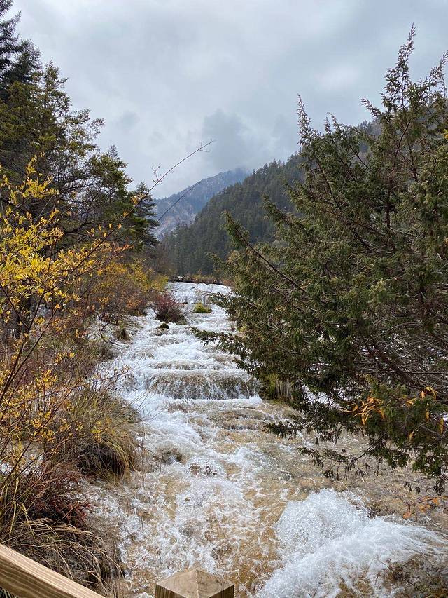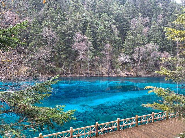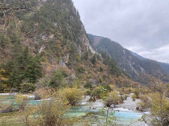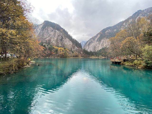 早上在县城的早餐店吃了早饭,驱车一小时到九寨沟风景区,门票169+摆渡车90.我看公众号说要提前一天预定,就先买了。到了停车场,有许多寨子里的村民可以把你拉进去,一个人220,只负责进门,里面的摆渡车是不查票的,到站就坐车。但是还是觉得不太放心,也有人选择这个方式。听说震后修建,在今年九月份才开业,里面还是有修建的迹象,但整体感觉影响不大。景区12点半以后就不能再入园了,一天最多接待2.3万人,我们去的时候算是淡季,只有7/8千人的样子。