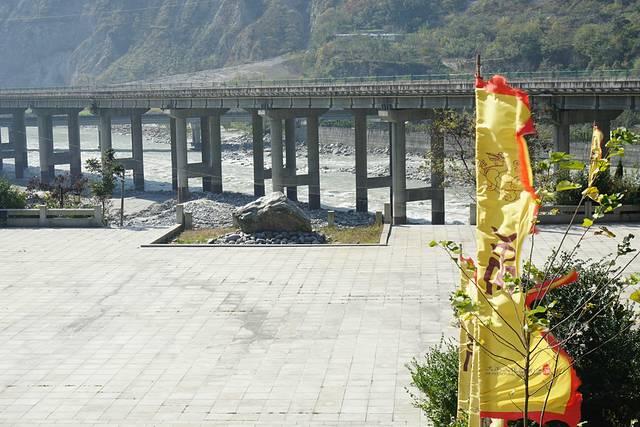 在服务区停好车,问过一个摊贩大姐,告诉我沿山边道路步行七、八分钟的样子可到大禹祭坛。车行不是很方便,而且只有从成都出来有绵虒服务区可以停下,回程没有,所以去大禹祭坛拜望的游人很少。