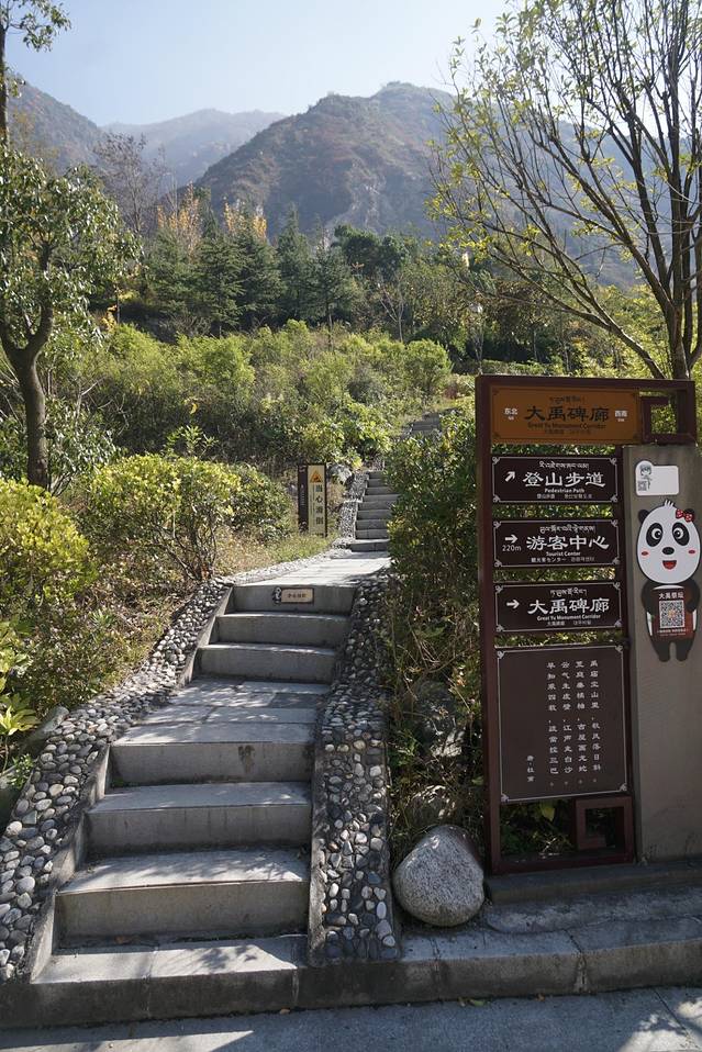 长长的碑廊都是刻在石头上的碑文,记述大禹的生平事迹和各种颂词。