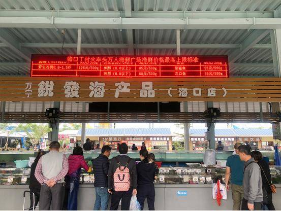 下午到了丁村万人海鲜广场天色还挺好,这里的海鲜好多,也都特别新鲜。因为不会挑选海鲜,然后我们想着找一家加工店先找好位置,然后让老板带着我们去挑选海鲜,这里海鲜加工店超级多,一家挨着一家,然后我们在美团,大众点评上选了一家评价很好的店——面朝大海鲜霸王岭6号,然后就直接顺着目标就过去了。