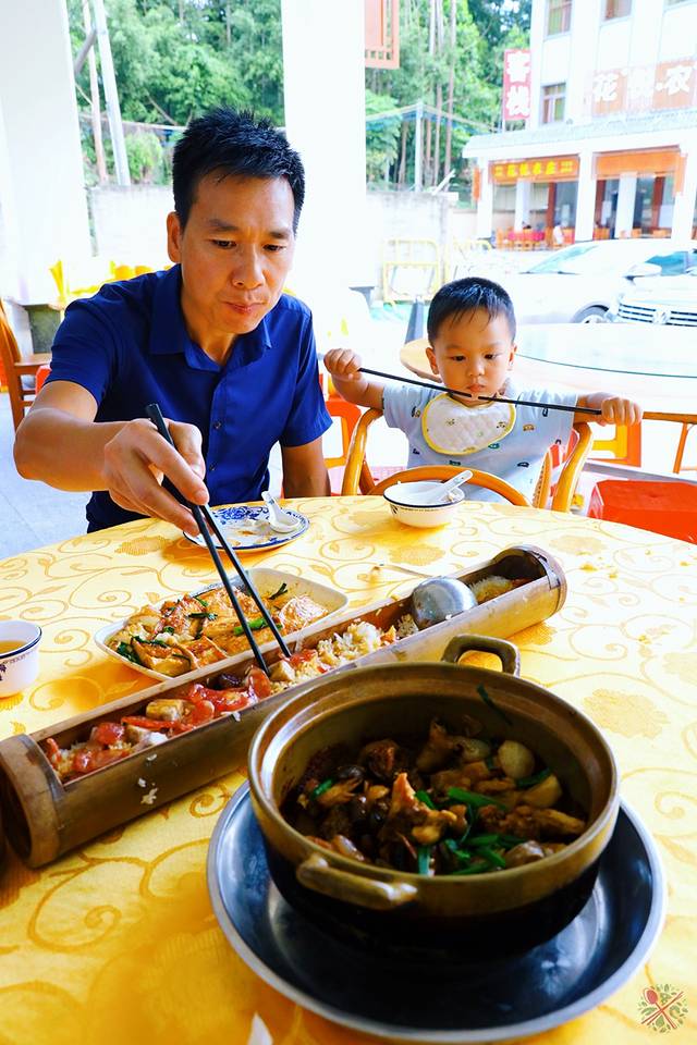 就在白水寨景区旁边,我们点了派潭烧鸡、山坑鱼和山坑螺,用荔枝木烧制的土鸡,鸡皮脆如纸,鸡肉嫩滑多汁,从里到外都很美味。