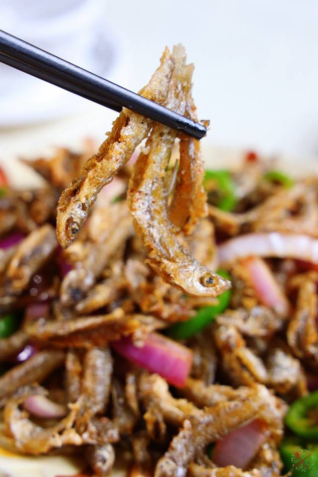 山坑鱼炸得酥脆香口,连骨头都嚼得烂,用来下酒味道一流。