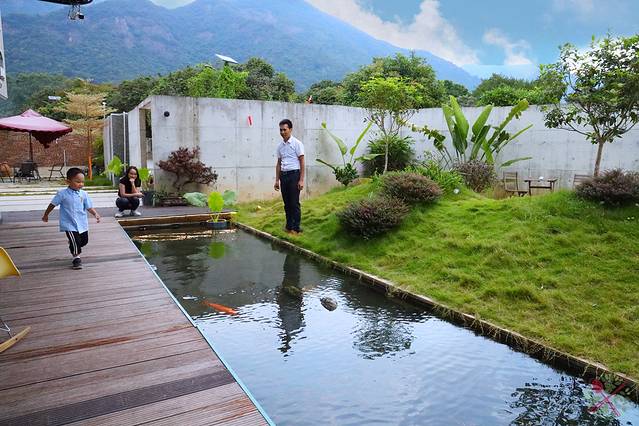 民宿院子有锦鲤池、秋千椅和草地,小小一方天地生机勃勃,可以坐在院子喝咖啡看书,度过悠然自得的一天。