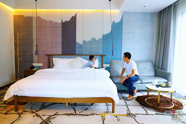 客房轻奢时尚大气,从山水森林汲取灵感,配套设施媲美五星级酒店,使用德国进口高端卫浴产品。